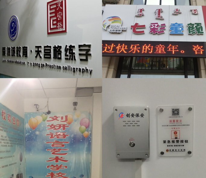《平安校园》工作持续开展,欢迎新客户〖赤峰爱信诚教育、刘妍语言艺术学校、七彩童颜三家培训学校〗接入赤峰创安保安服务有限公司【一键式视频双向对讲110联网报警系统】实时快“报”,有“警”无险。科学的保障了孩子们的安全,对孩子们的安全做到了有效、全方位的守护。创安在,安全在,安心常在!